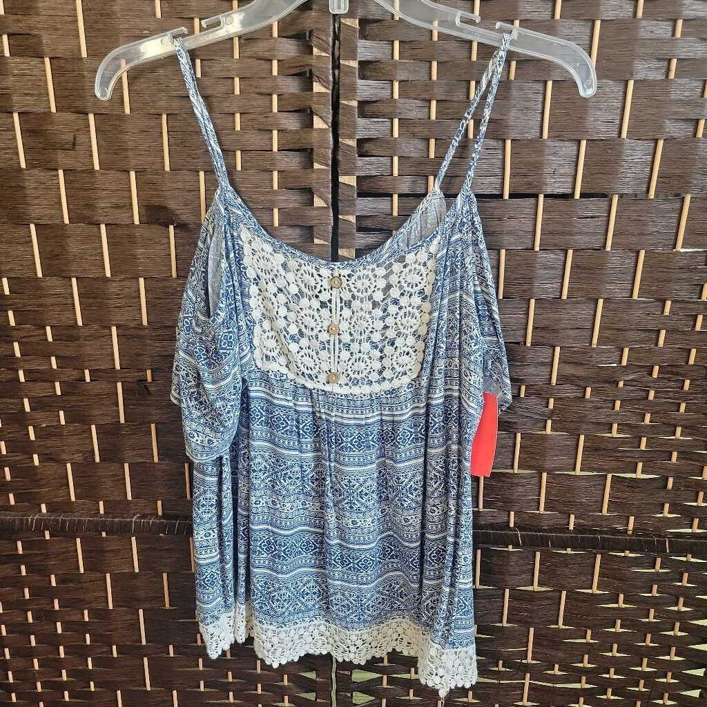 BL/CR,MEDIUM,SPAGHETTI STRAP TOP
