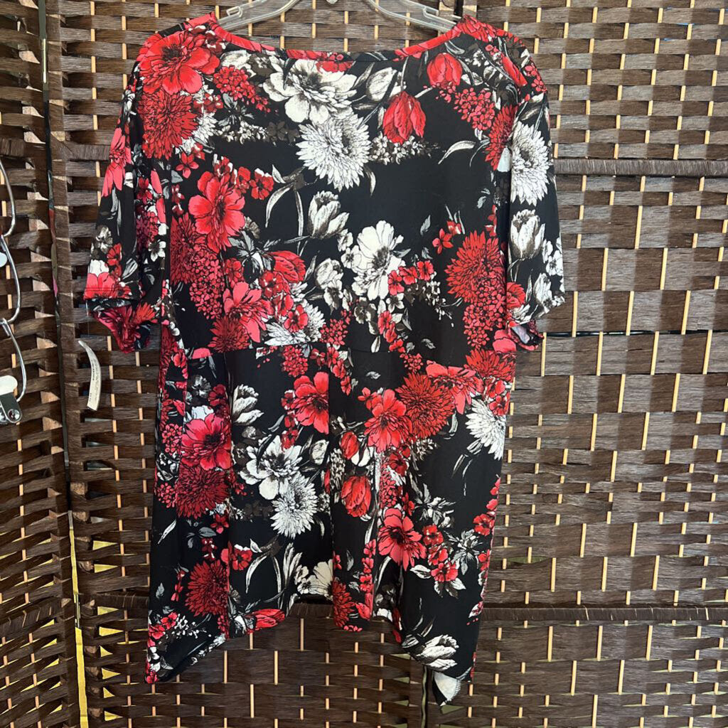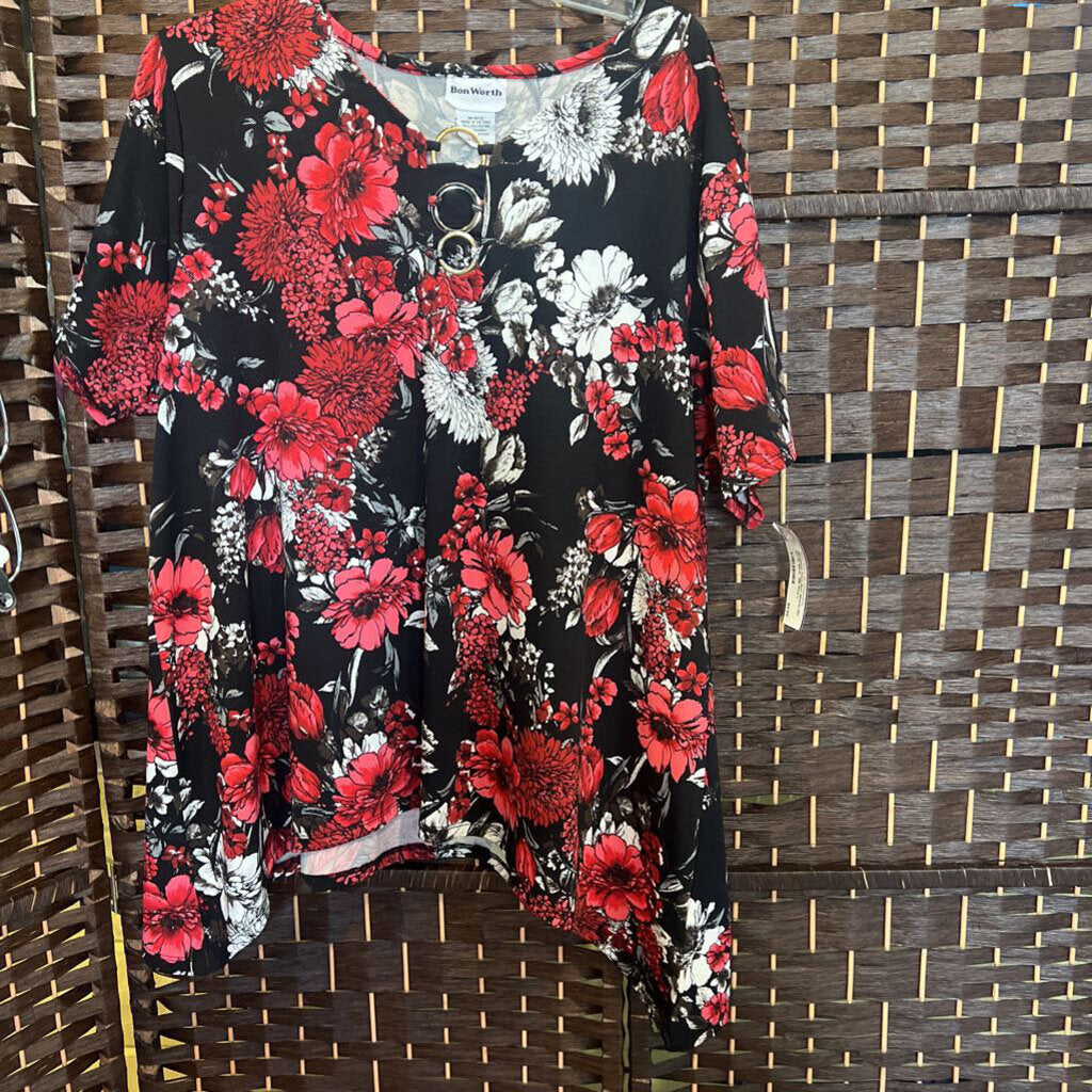 Bon Worth,Blk Red,L,Flrl Circle Neck