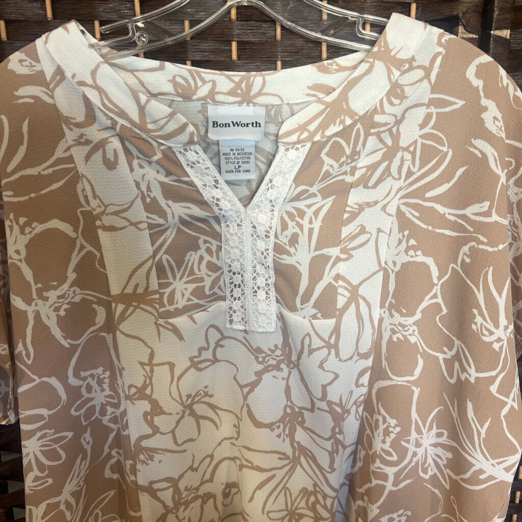 Bon Worth,Tan/Cr,LP,Floral Top