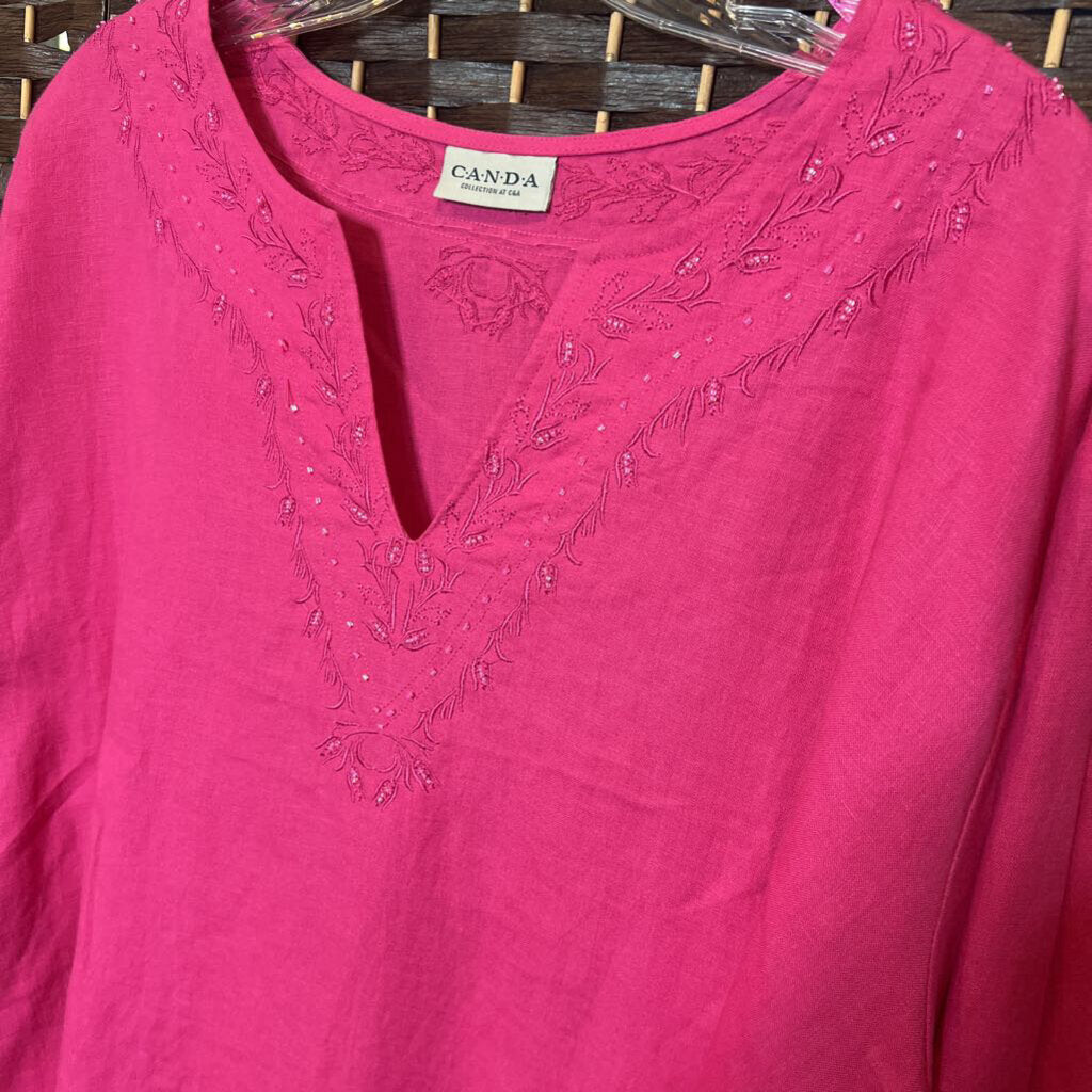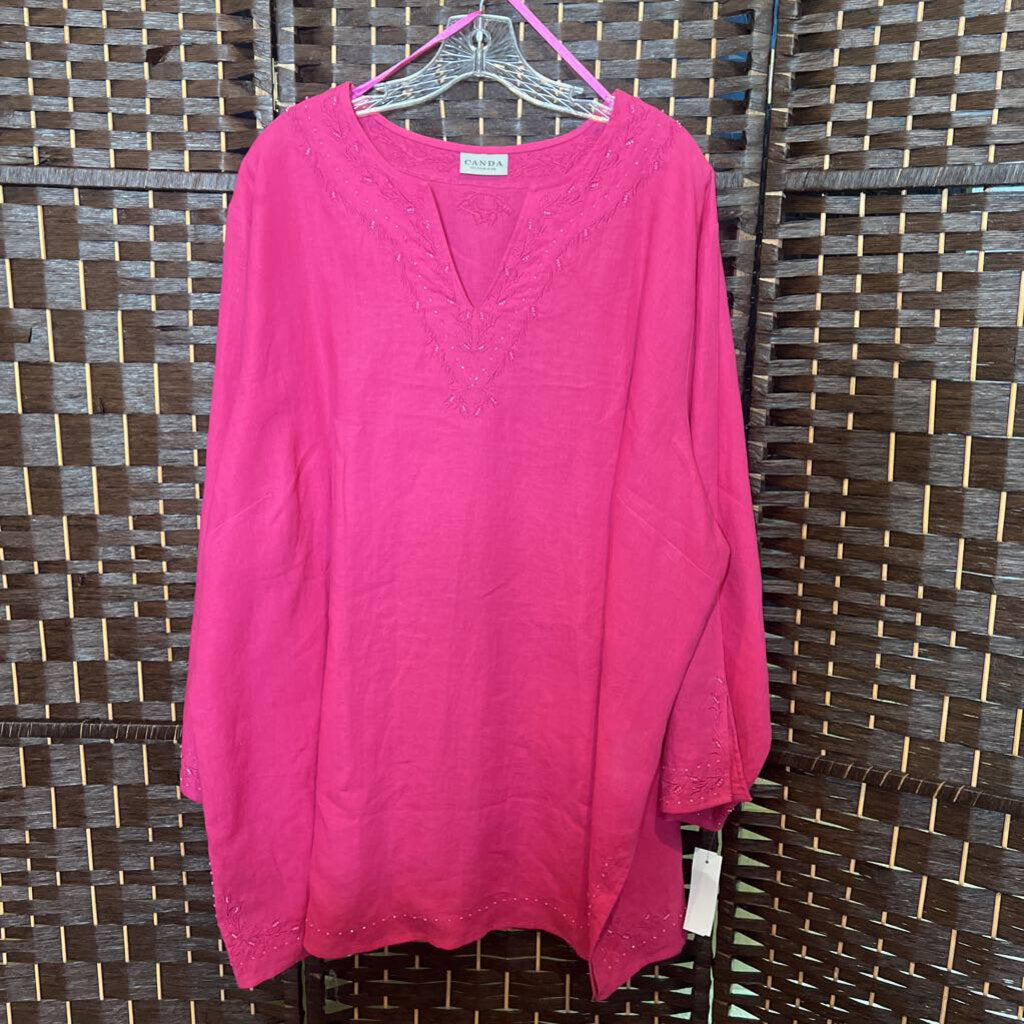 Canda,Pink,3X,Embroidered Top