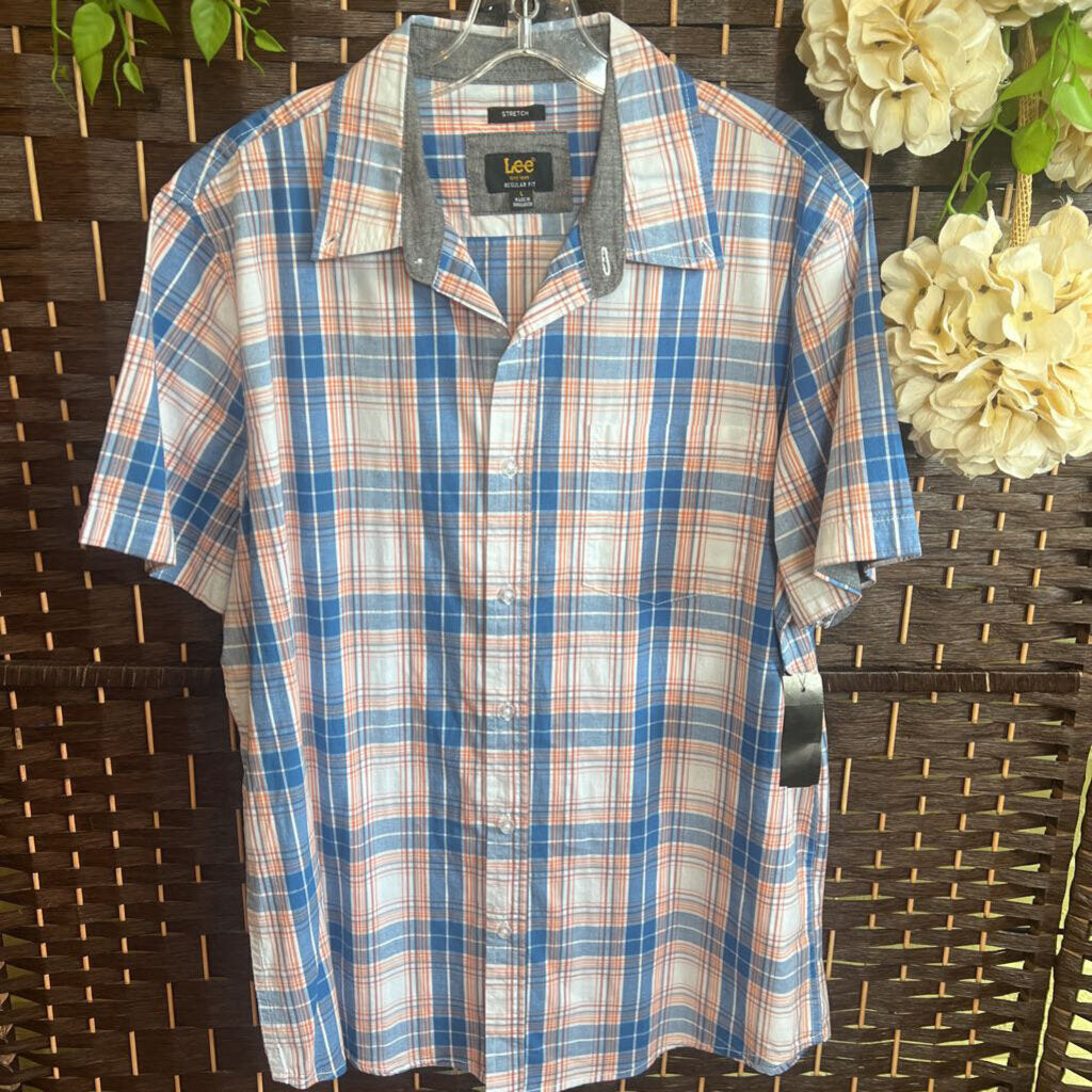 Lee Stretch,Blue+,Large,Plaid Button Shirt