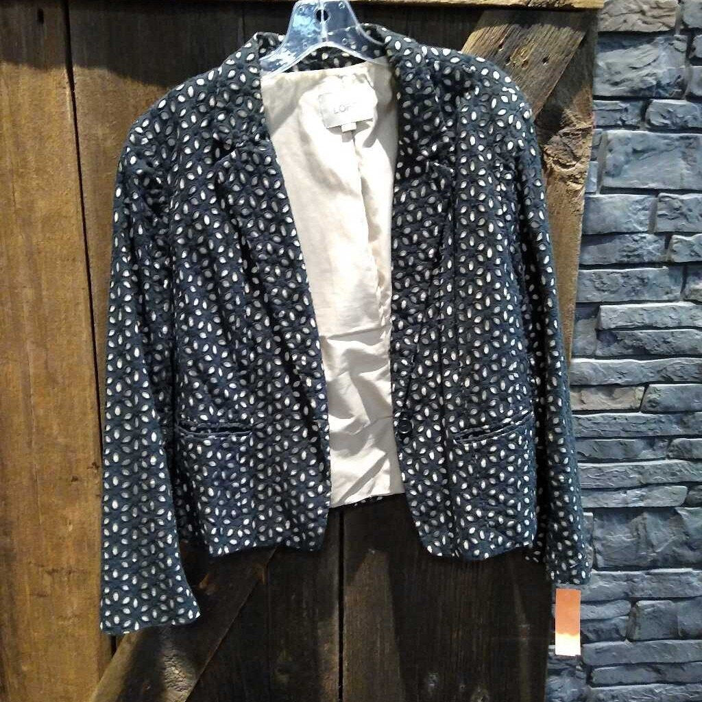 Loft,Bl/Tan,12,Embroidered Blazer