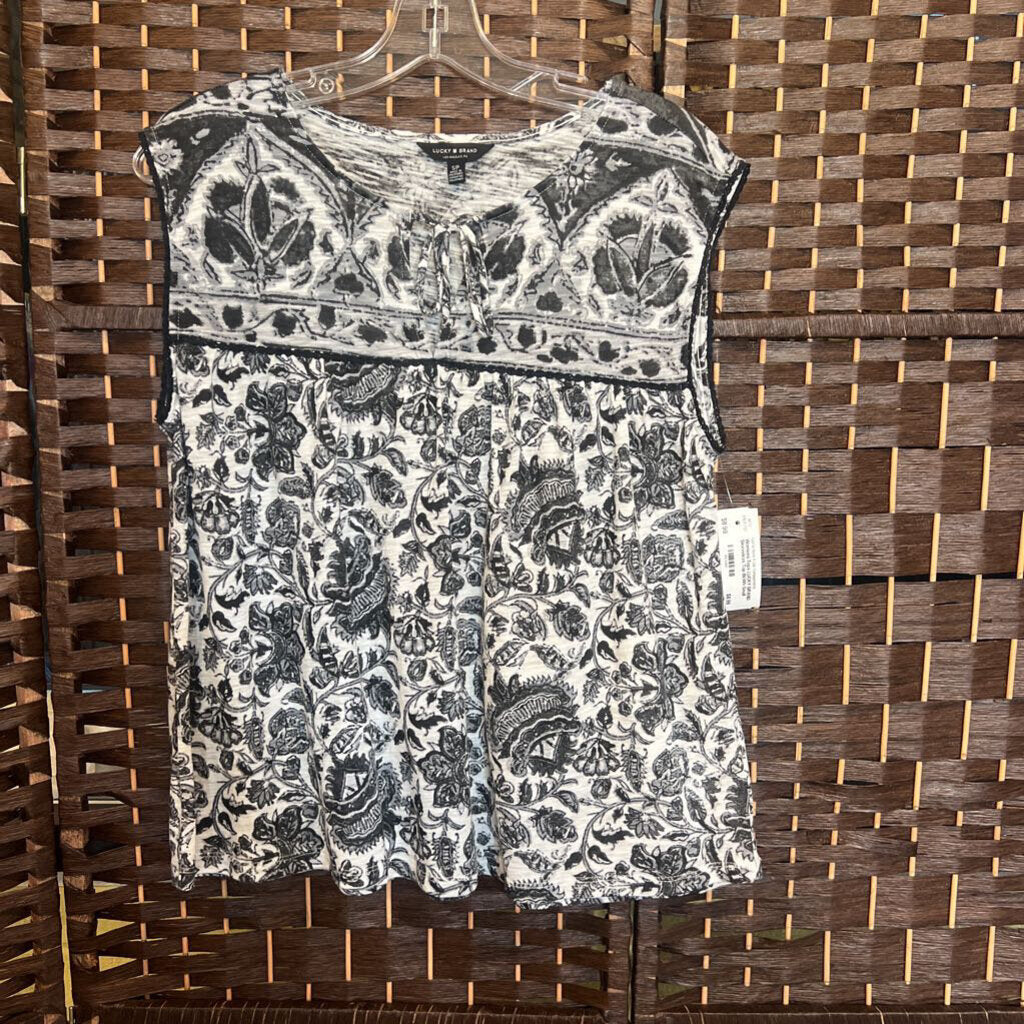 LUCKY BRAND,Bl/Wh,Small,Sleeveless Top