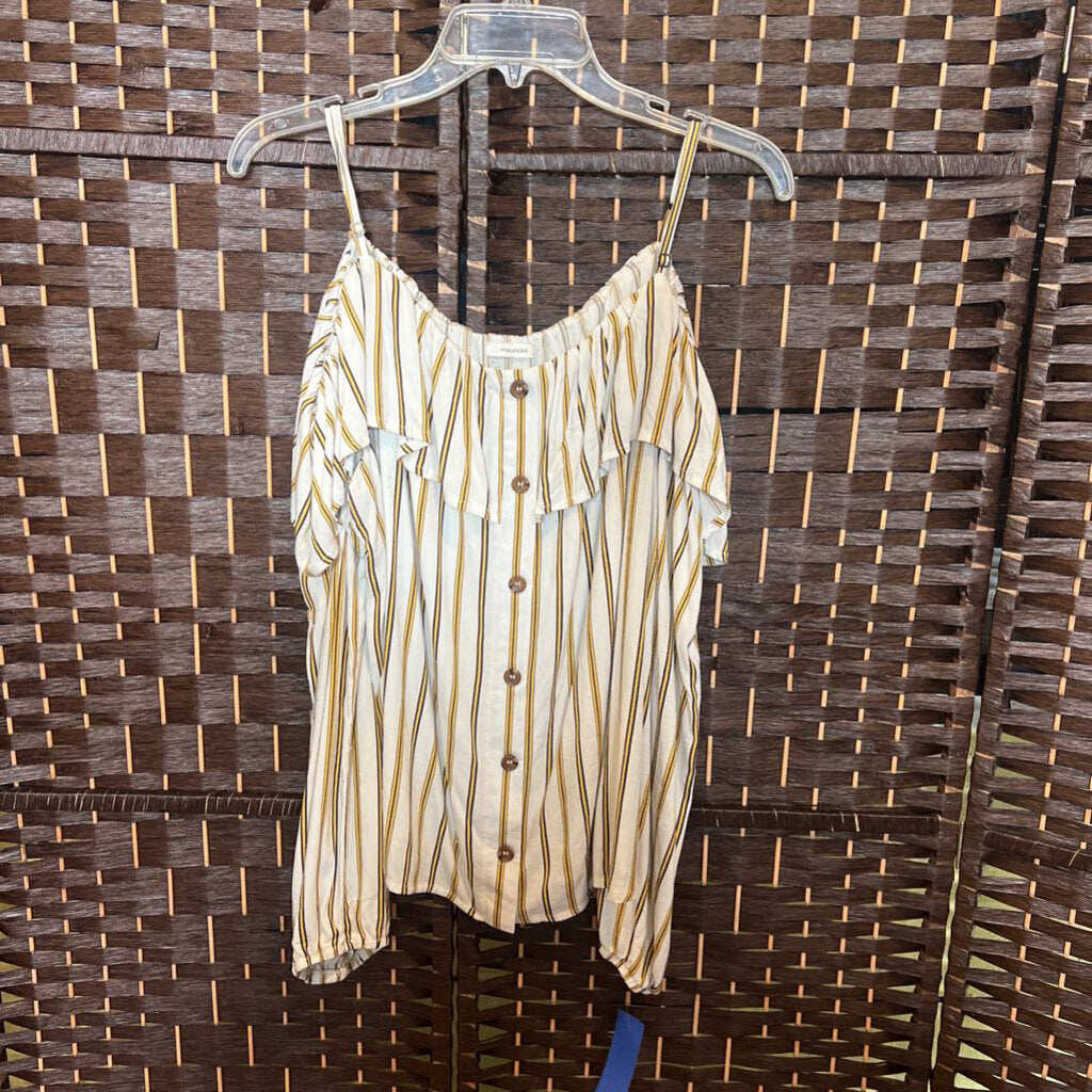 MAURICES,Wht Gld Blk ,L,Stripe Ruffle