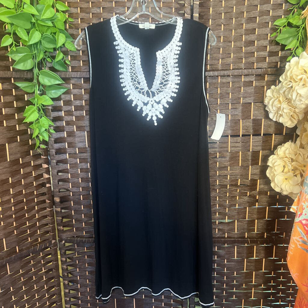 MAX STUDIO,Bl/Cr,Medium,Sleeveless Embroidered Dress