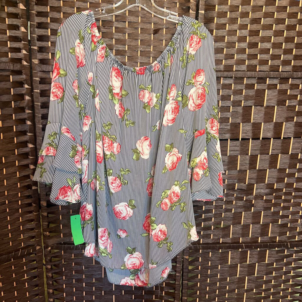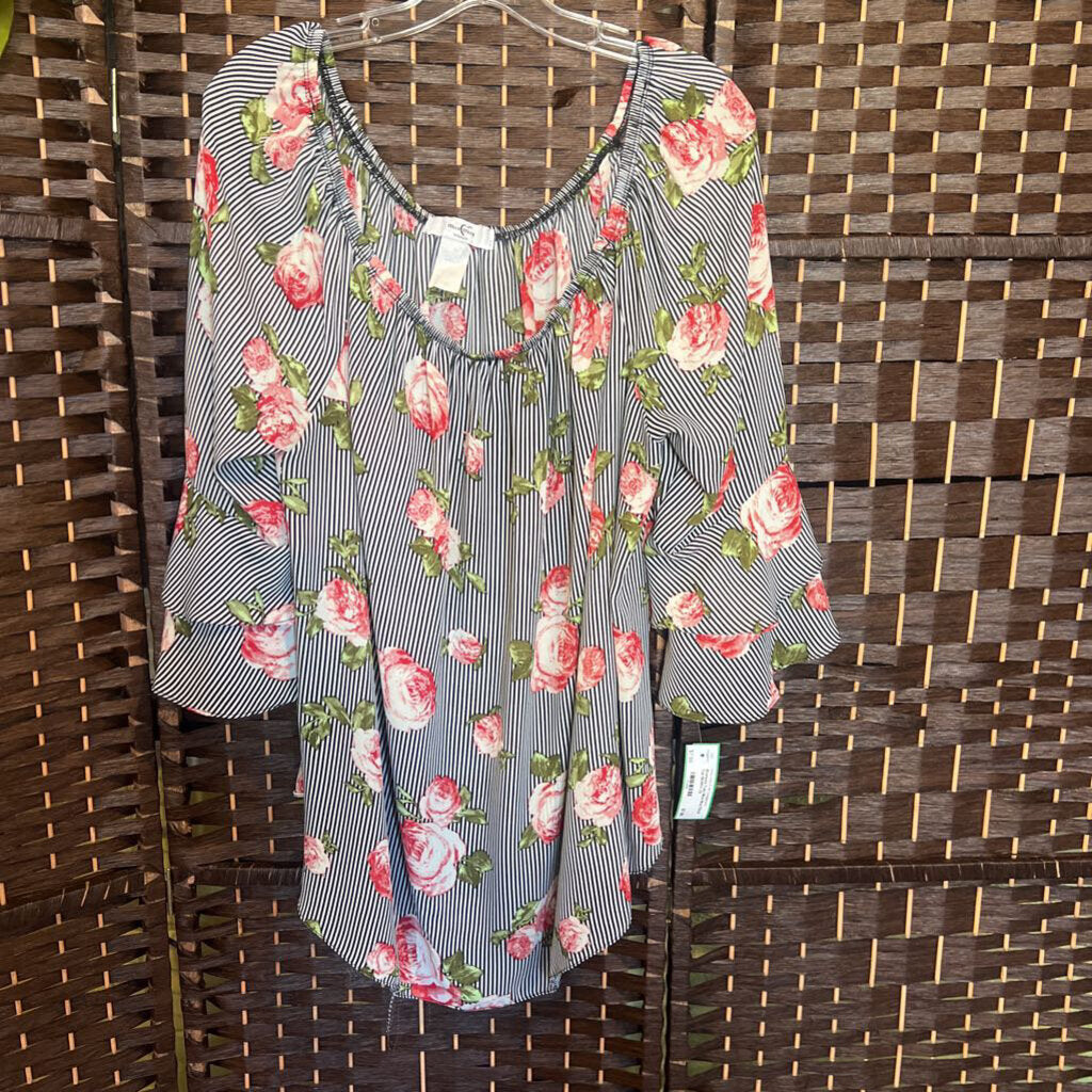 Moa Moa,Bl/Wh+,2X,Floral Top