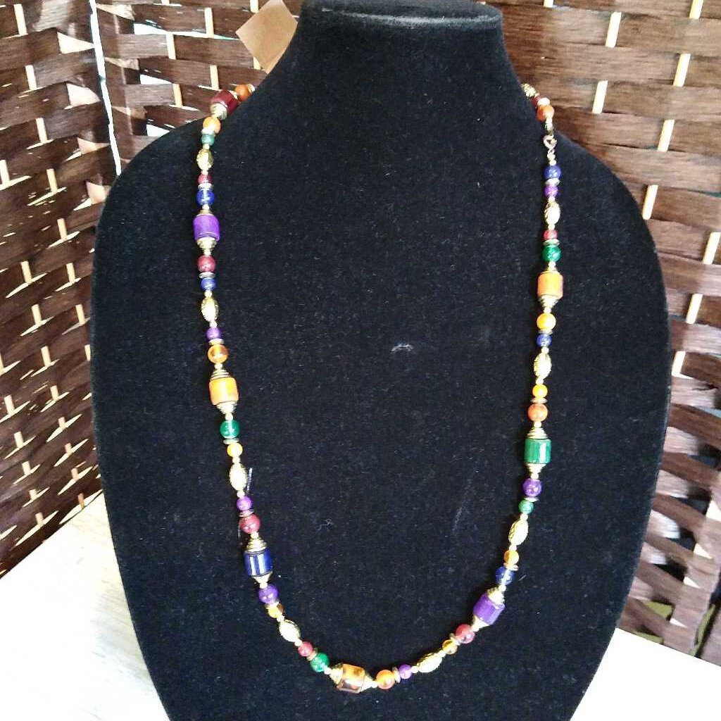MULTI/GOLD,LONG,BEADED NECKLACE