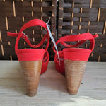 RED,8M,WHITE HOUSE BLACK MARKET WEDGE SANDALS