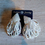 WHITE+, SEED BEADED DANGLE EARRINGS
